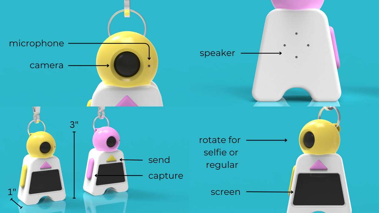 We knew we wanted to include a screen, a camera, and a button, as well as a simple companion app.